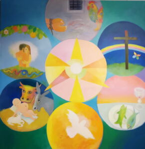- „szenteltessék meg a Te neved”: bal felső képen a teremtés dicsérete