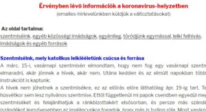 részletes tájékoztatás a korona-vírus miatti egyházi intézkedésekről