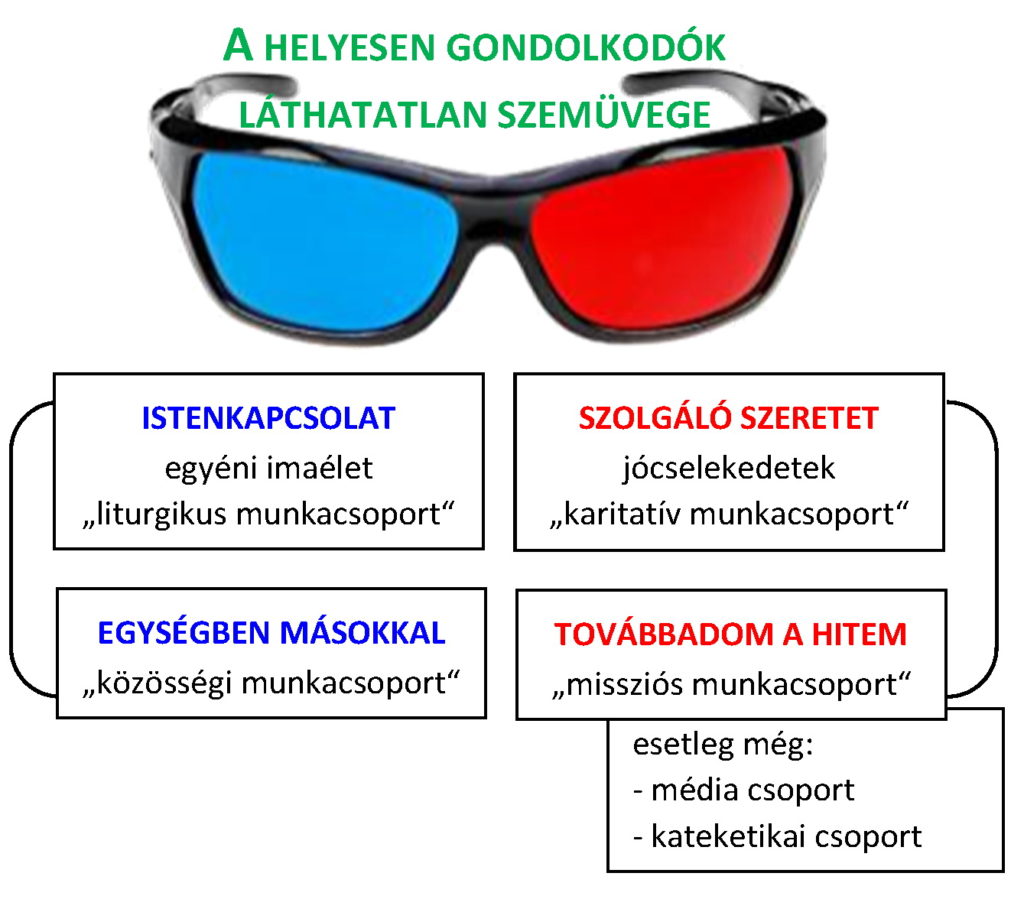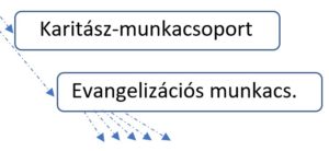 Legalább ez a kettő nagyon fontos lenne. Mindenki, aki nem a karitász munkacsoportot választja, az az evangelizációs munkacsoportba tartozhat. De ez további munkacsoportokká fejlődhet (ld. fentebb az organigrammot), ami a kedves hívek jelentkezéseitől, aktivitásától függ.
